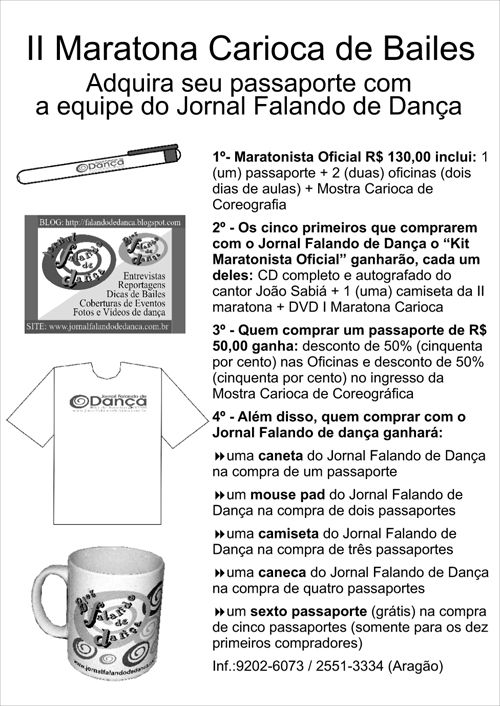 Brindes especiais para quem adquirir conosco seu passaporte da II Maratona Carioca de Bailes